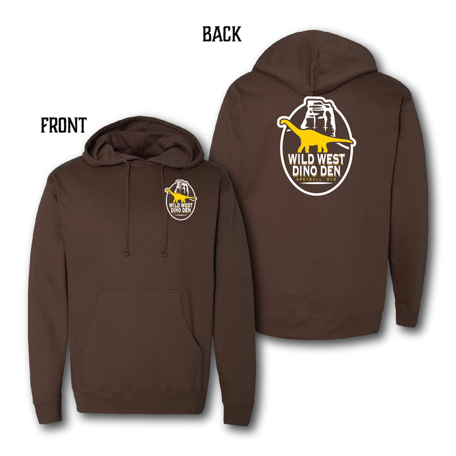 WWDD Dino Den Badge Brown & Gold Hoodie — Brown