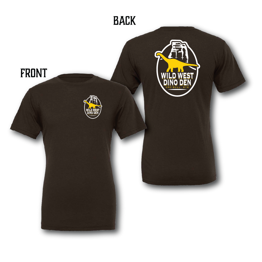 WWDD Dino Den Badge Brown & Gold Tee — Brown